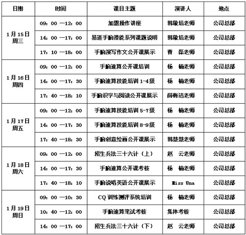 通知:易道精品課程將于01月15日進行新年首期師資培訓